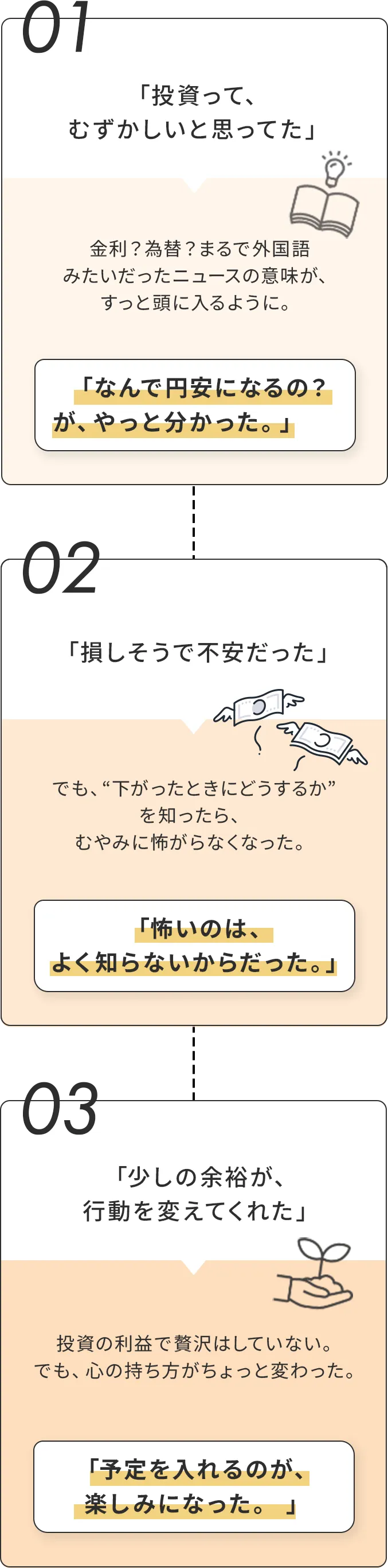 「習うより慣れろ」という考えのもと、投資の楽しさと可能性を自身の経験を通して発信し続けている。